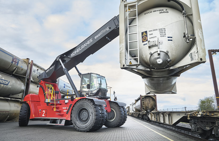 The two Konecranes reach stackers operate year-round, from morning to evening. Four dedicated drivers and a pool of 16 multi-skilled staff with truck licences operate the machines. The trucks offer quiet operation, spacious cabins, suspension seats, camera-connected screens and modern IT systems for handling containers, trailers and swap bodies.