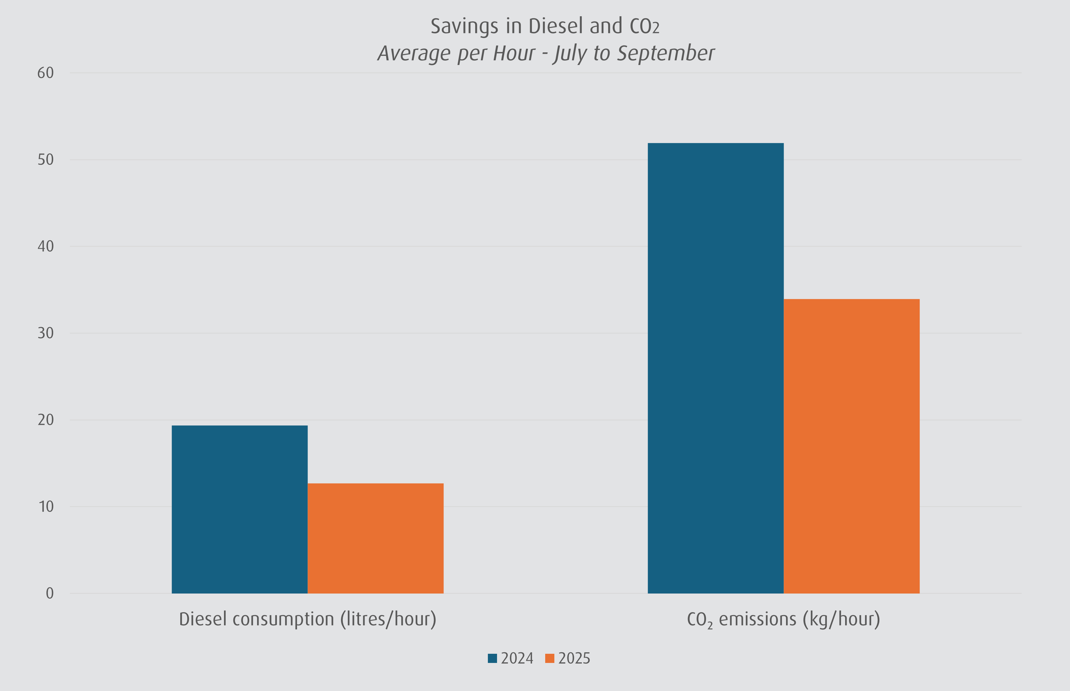 The two new Konecranes reach stackers arrived at Taulov Kombiterminal in May 2025. Environmental benefits were quickly confirmed through data from the built-in Konecranes Truconnect software. On average, the machines save 6.7 litres of diesel per hour, equivalent to a CO₂ reduction of 18.0 kg per machine per hour. This represents a 34.4% fuel saving and a 34.6% CO₂ reduction compared to the previous solution.