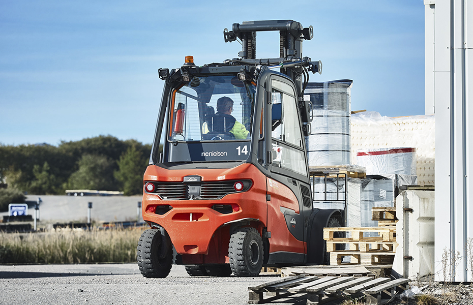 N.C. Nielsen has recently delivered three additional Linde E40 electric trucks with Lithium-ION batteries to Kingspan LOGSTOR. This brings the total Linde fleet to 17 units, all helping to keep logistics running smoothly. The new Linde E40 electric trucks operate across 50 hectares of outdoor driving area, constantly transporting palletised goods across ramps, paved surfaces and gravel roads — terrain that poses no challenge for the shock-absorbing electric trucks.