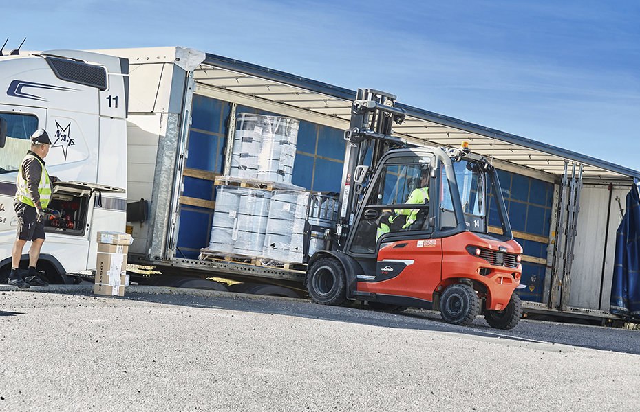 The Linde E40 trucks are designed for quick response and efficient performance throughout the workday. At Kingspan LOGSTOR, the trucks have been fine-tuned for faster acceleration, enhanced hydraulic speed, and a maximum speed of 20 km/h, ensuring both productivity and safety on the premises.