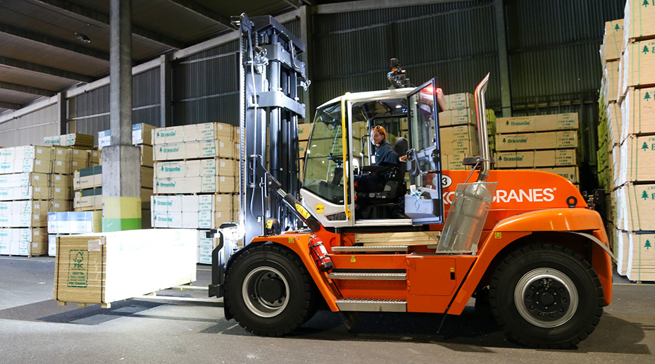 Every day, vast quantities of timber pass through the port, placing high demands on machines capable of heavy and continuous operation.