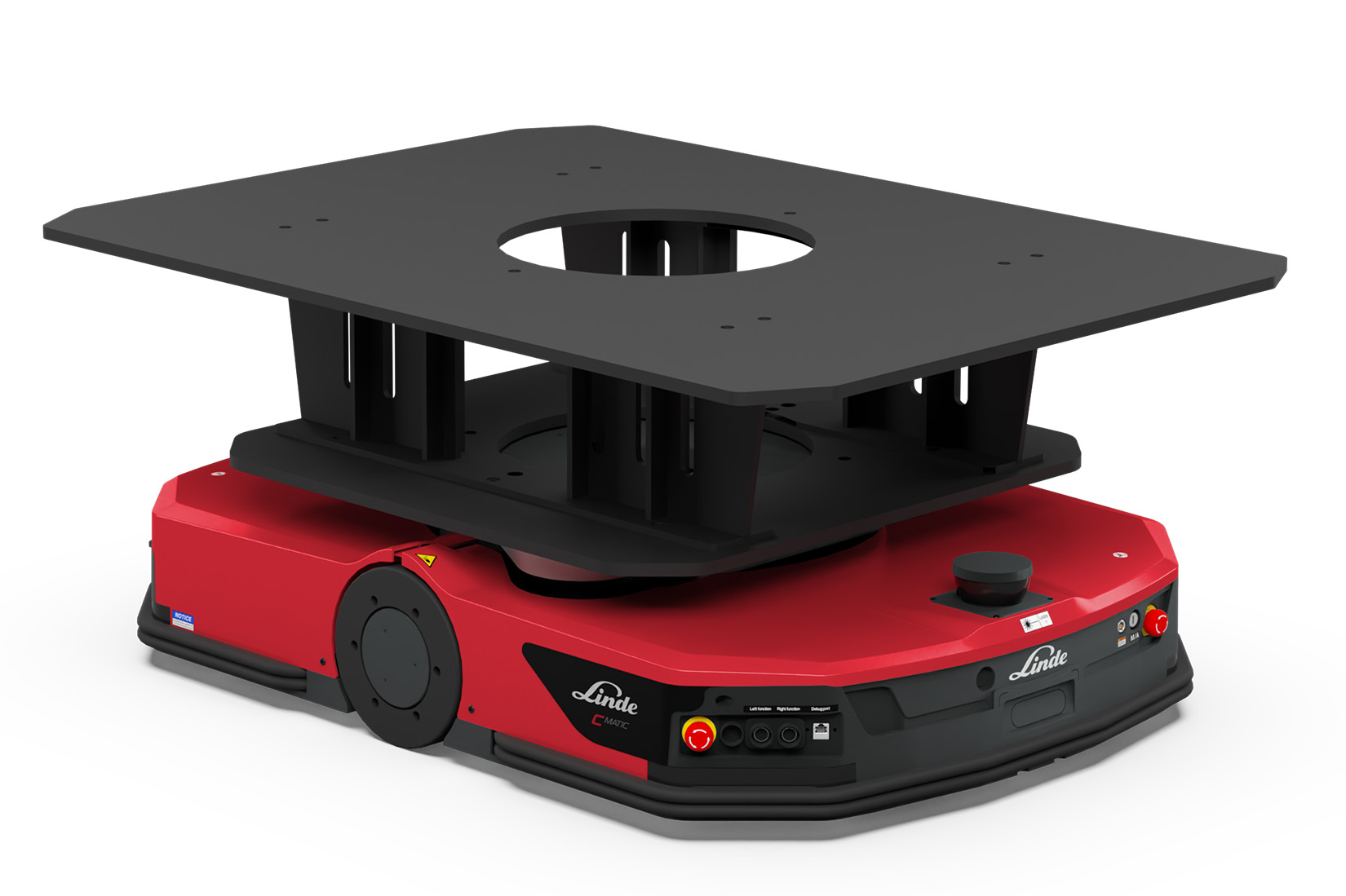 Flat load carrierThe C-MATIC automated mobile platform from Linde Material Handling is ideal for transporting material over short and medium distances in confined spaces. The load can be picked up and set down together with trolleys that the C-MATIC can drive underneath.