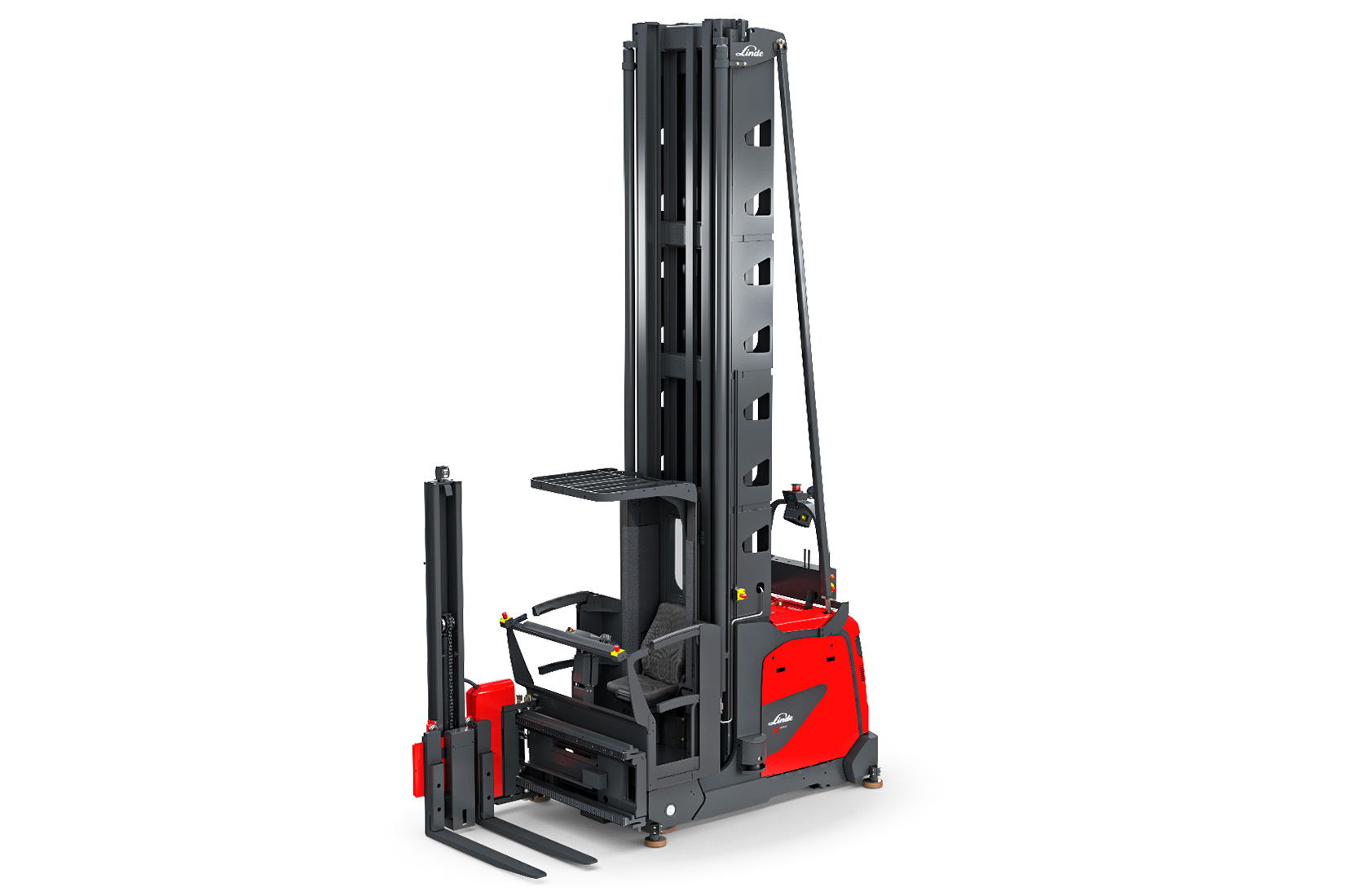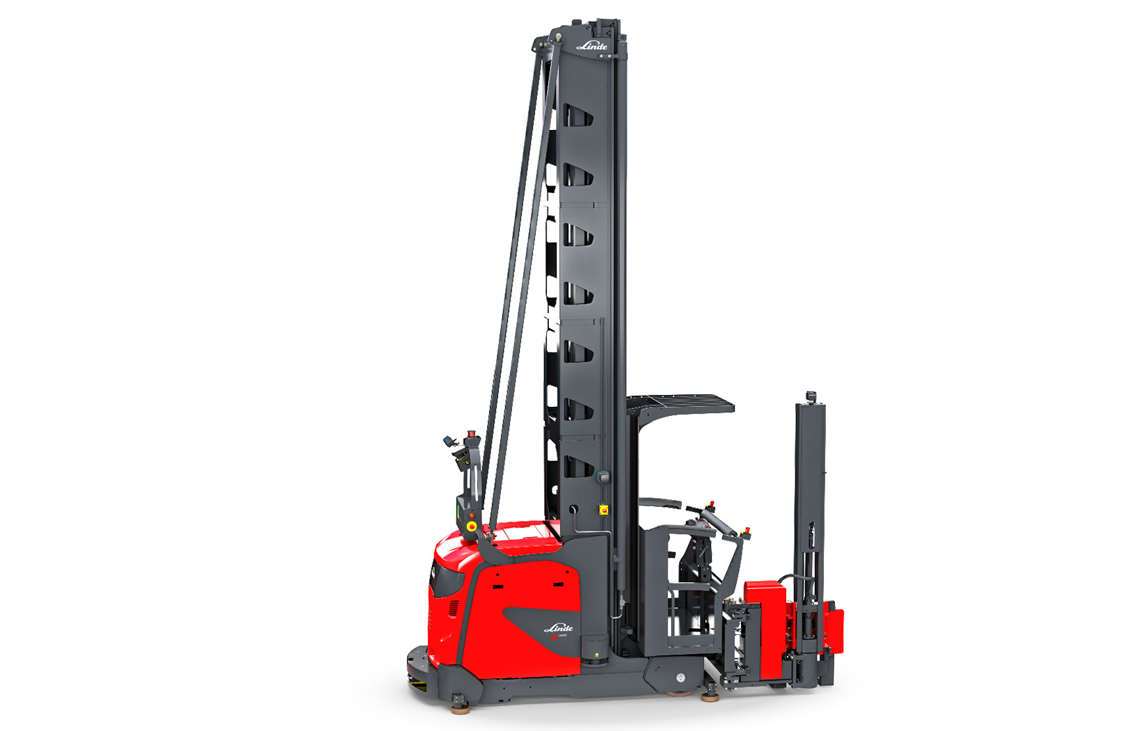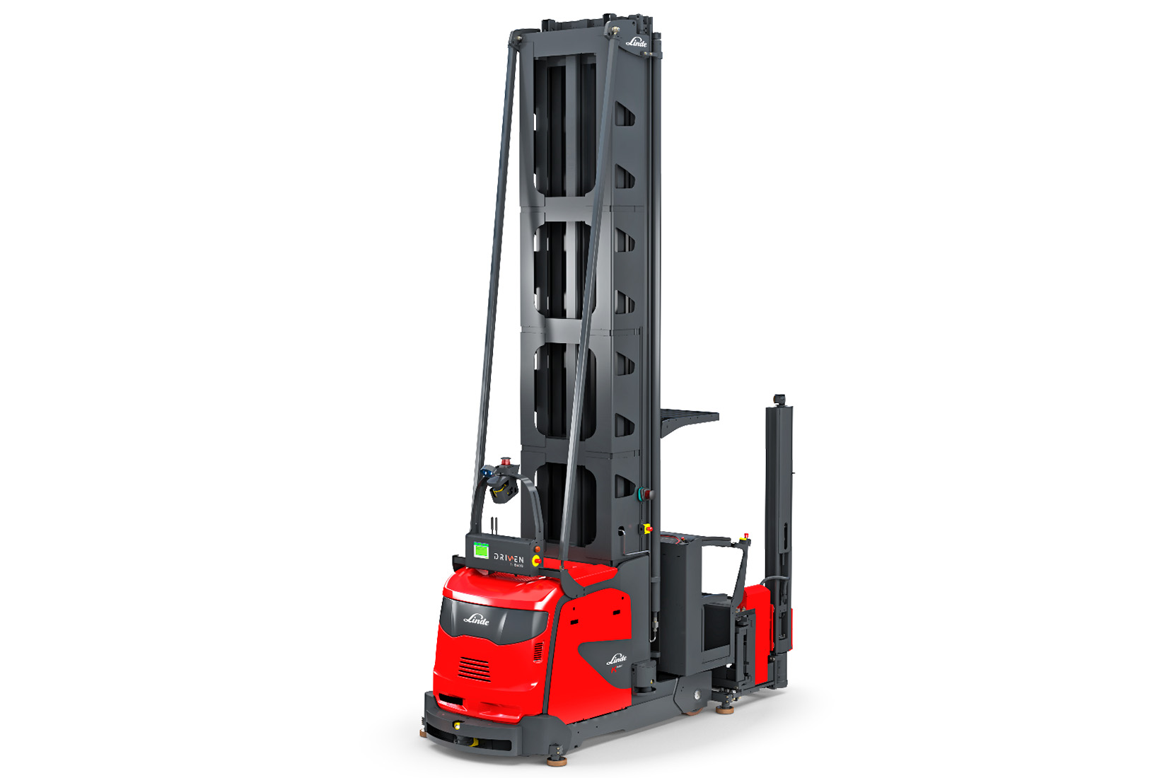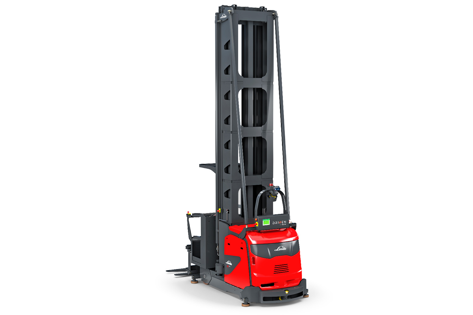 The Linde K-MATIC autonomously driven turret truck is suitable for loads of up to 1,450 kg and lift heights of up to 14 meters (16 meters on request). The intelligent natural feature navigation system guides the K-MATIC safely without additional infrastructure, such as laser reflectors, and is compatible with all common narrow aisle applications.
