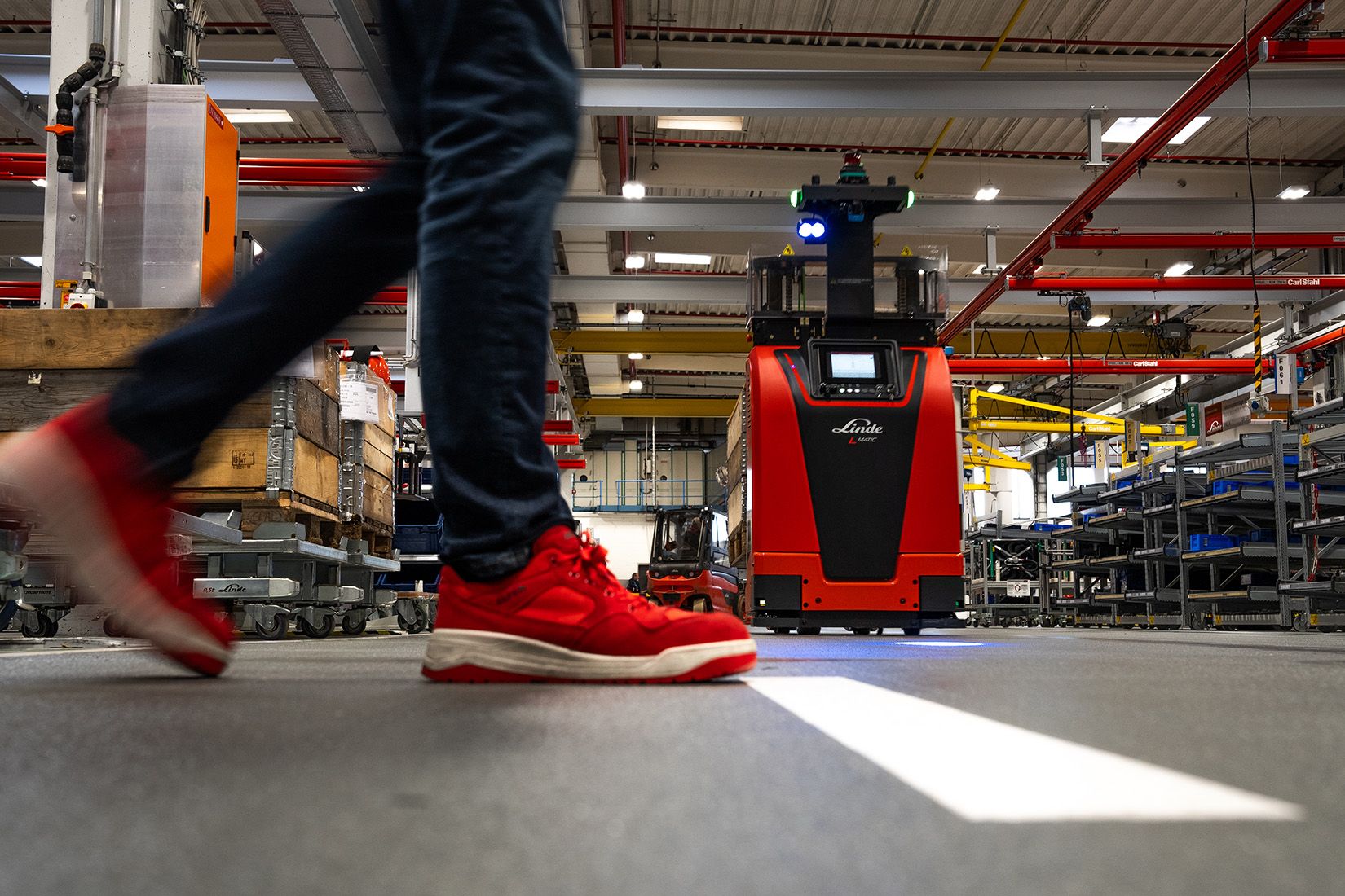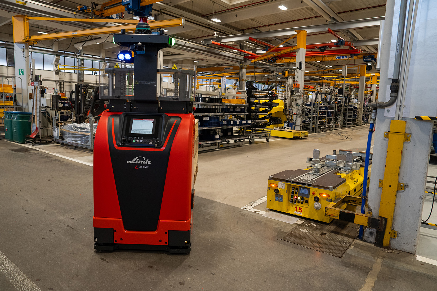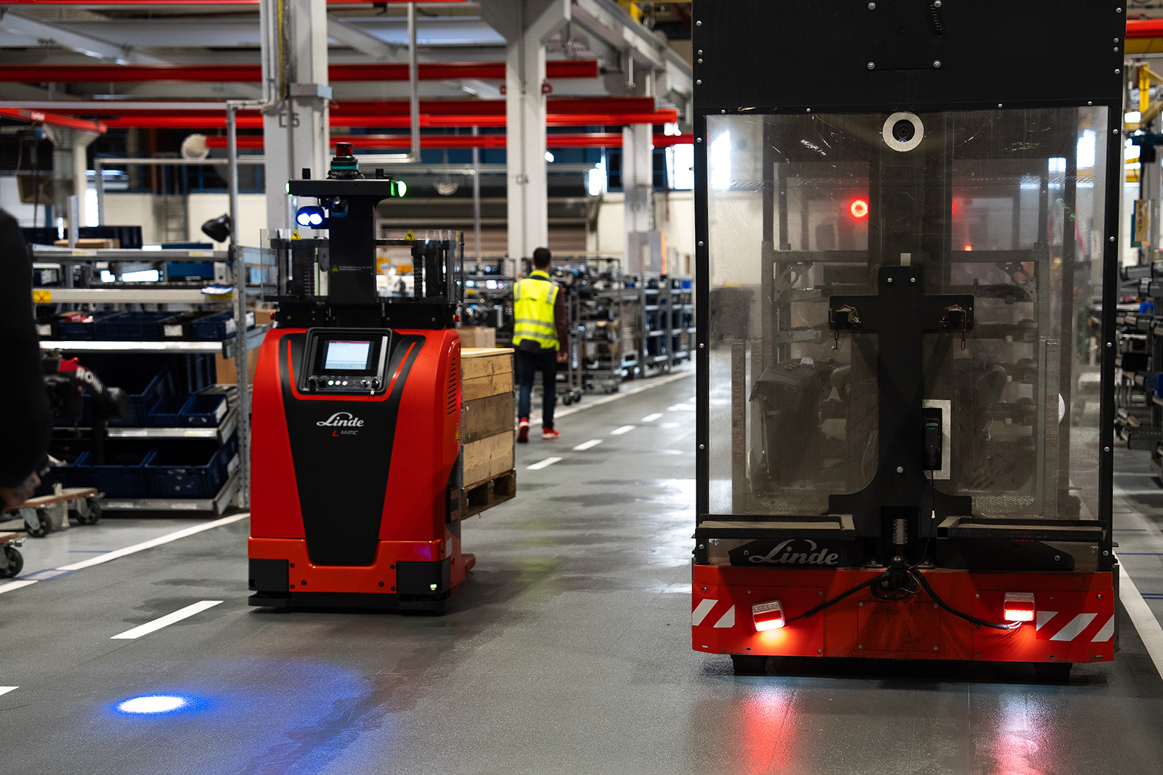 The automated L-MATIC core pallet stacker was specially developed for use in tight spaces. With a load capacity of 1.2 metric tons and a maximum lift height of 1.84 meters (storage height: 1.78 meters), this pallet stacker is suitable for standard applications including ground transport, conveyor belt use, and storage and retrieval at low levels.