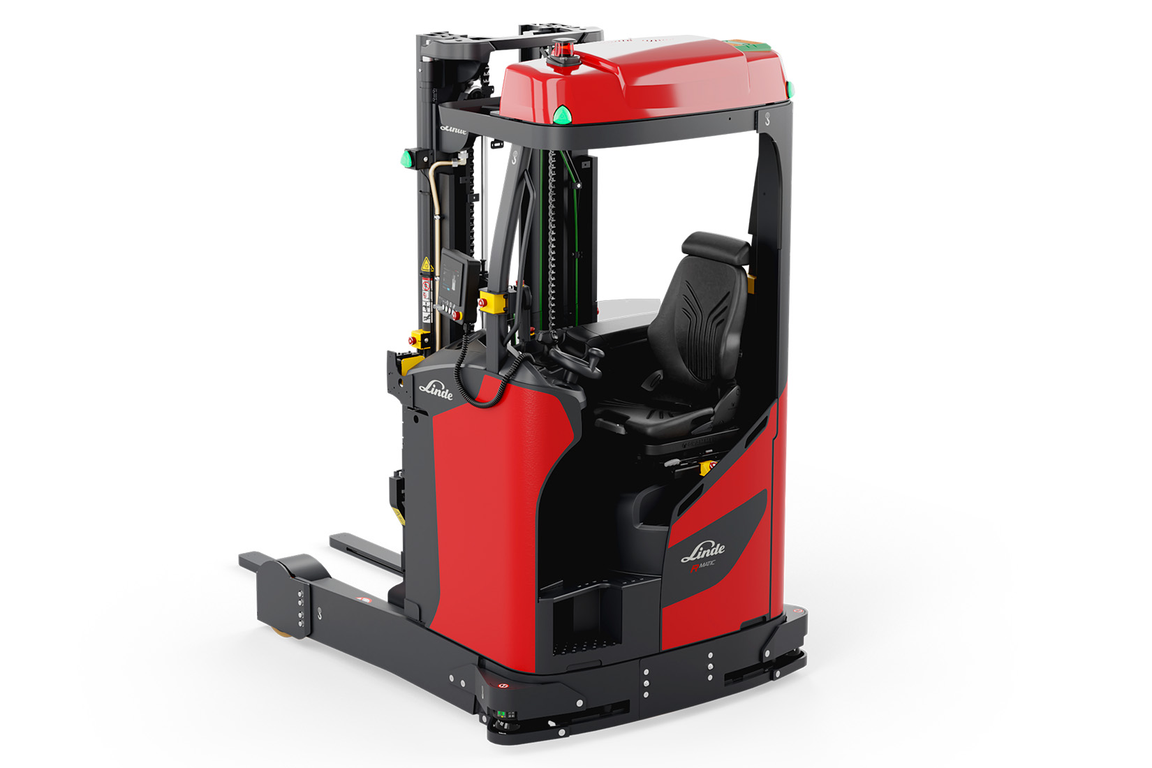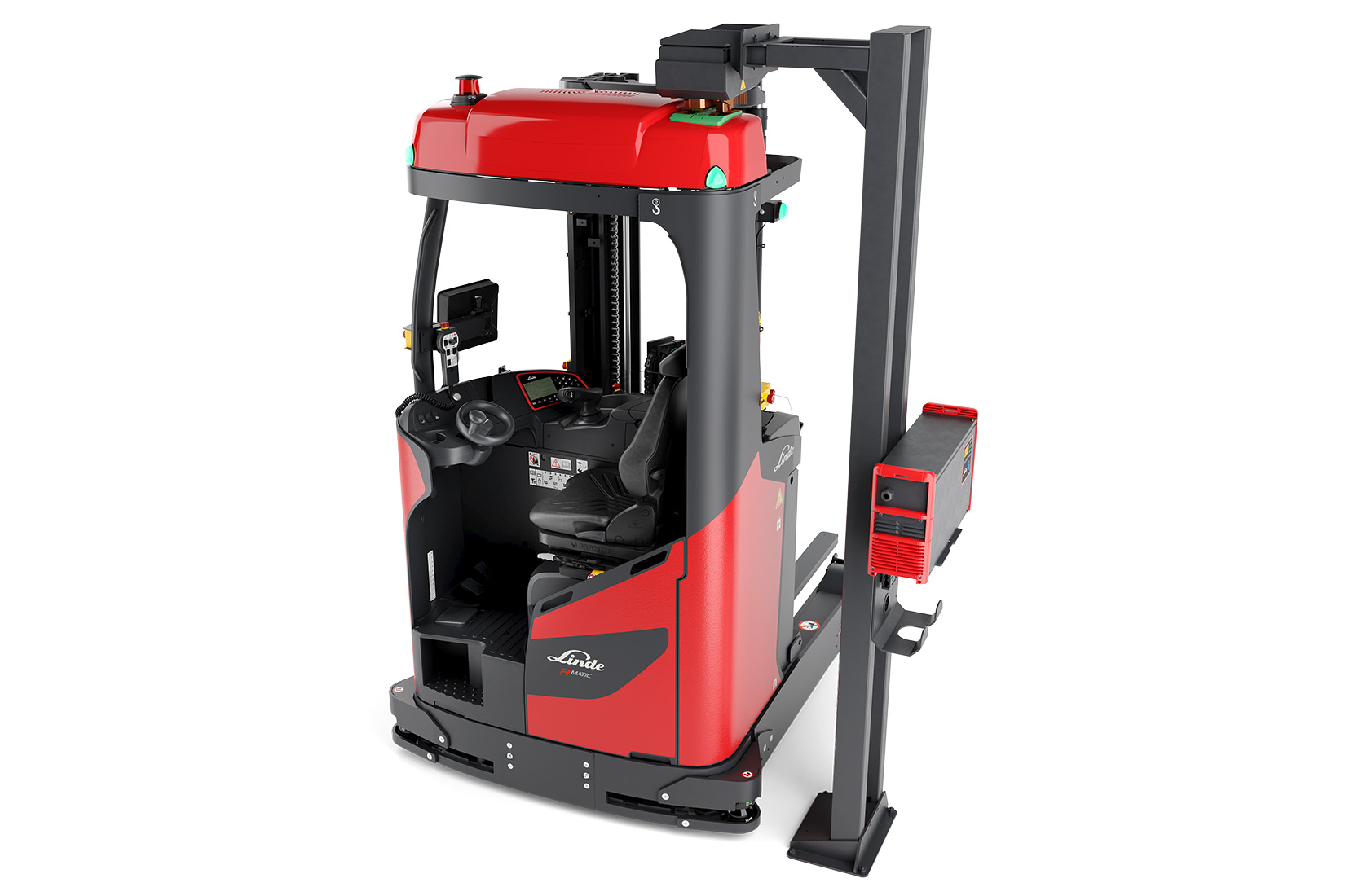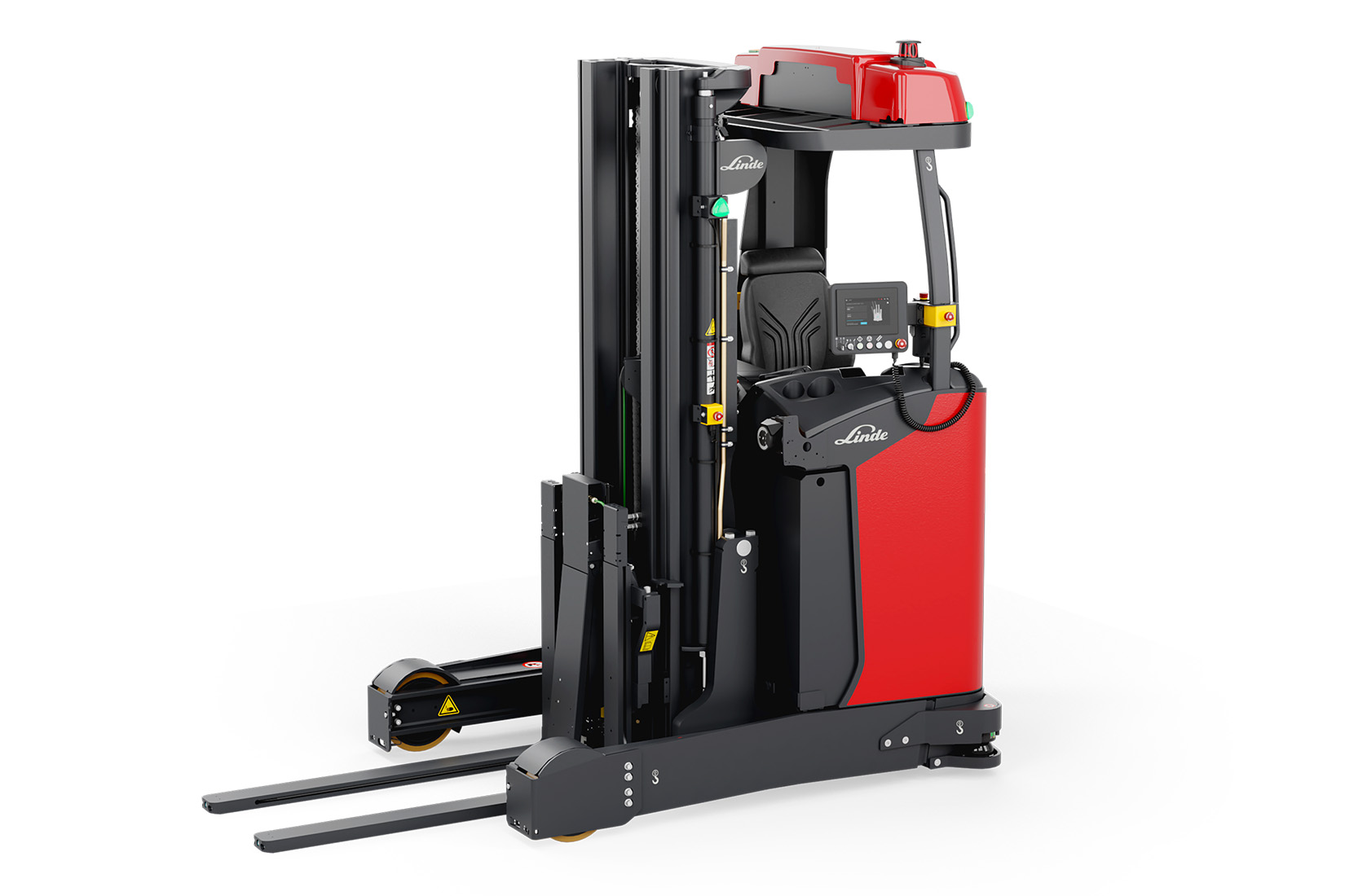 The automated R-MATIC k reach truck is the ideal solution for efficiently transporting as well as precisely storing or retrieving goods weighing up to 2,300 kilograms at heights of up to 10 meters. The R-MATIC k is a reliable companion in incoming and outgoing goods, for storage and replenishment processes in high-rack warehouses, as well as for transporting and delivering goods to transfer stations between conveyor belts and packing stations.